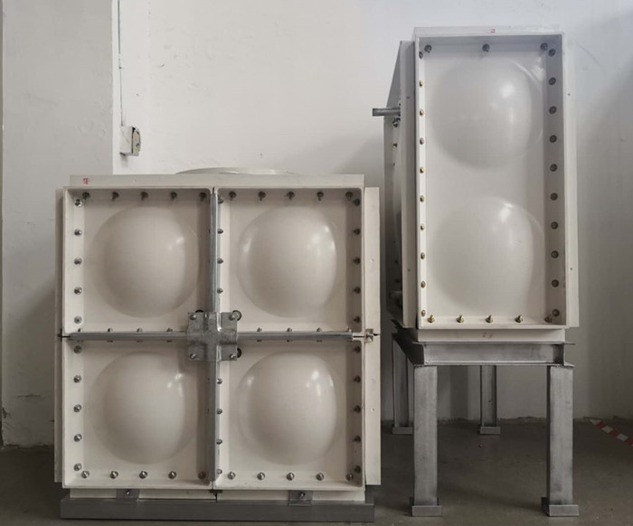 騰翔玻璃鋼水箱是用先進的沖壓設備沖壓出來的高質量玻璃鋼模塊組合而成,依據(jù)相對不同的三維結構規(guī)劃參數(shù)來決議運用不同厚度的模塊,在廠內或現(xiàn)場實施焊接拼裝。玻璃鋼水箱組成的四個旁邊面及頂板都能夠由玻璃鋼模塊拼裝而成,主要來介紹下水箱底板、槽鋼結構以及資料的選用,這些要素對整個水箱的形狀以及日后是否變形會有很大影響,因而要從水箱的規(guī)劃和裝置開始,要根底的穩(wěn)定性及水箱全體強度。